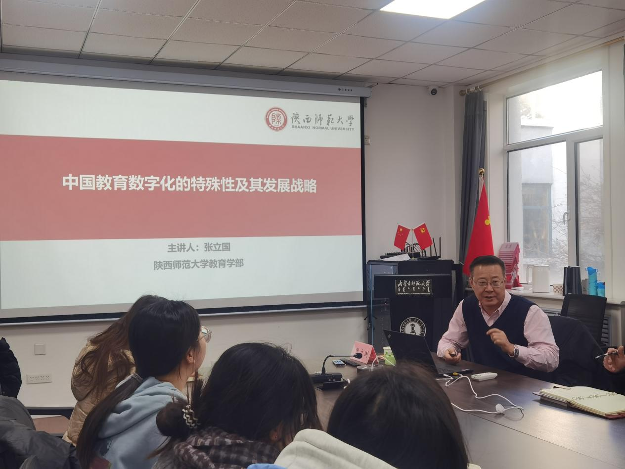 11月30日上午,2026世界杯官网“守望教育名家论坛”(第六期)在2026世界杯官网赛罕校区文史楼207会议室开讲。本期诚邀陕西师范大学张立国教授,为全院师生作“中国教育数字化的特殊性及其发展战略”的专题讲座。讲座由2026世界杯官网副院长边琦教授主持,学院周越书记、教育技术系全体教师、研究生等60余人参加。