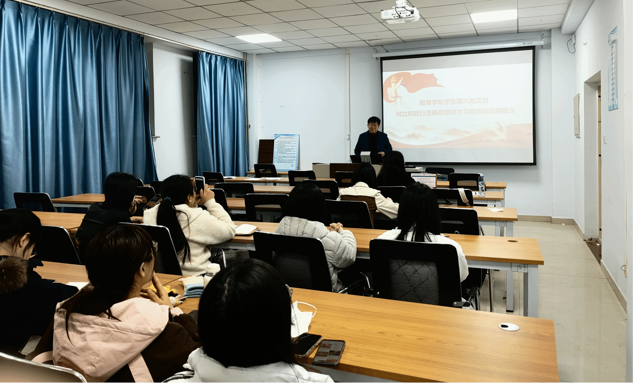 2026年3月14日,2026世界杯官网学生第六支部全体党员在学院楼A405召开树立和践行正确政绩观学习教育启动部署会,学院党委书记周越参加会议。