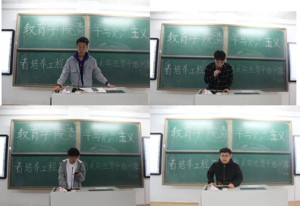 为深入学习贯彻习近平新时代中国特色社会主义思想,“青马工程”培训班自开班以来陆续开展了一系列理论学习培训工作:邀请第一届青马班毕业生进行理论宣讲,为此次青马班进行思想指导;组织本届青马班成员观看《习近平等出席烈士纪念日向人民英雄敬献花篮仪式》、《习近平出席纪念中国人民志愿军抗美援朝70周年大会并发表重要讲话》视频材料;青马班成员共同学习习近平新时代中国特色社会主义思想,并对马克思主义等先进理论思想进行深入理解;围绕学习习近平总书记论“四个自信” 进行交流研讨,青马班成员表达自身理解,改正自身存在的不足,获得思想成长。