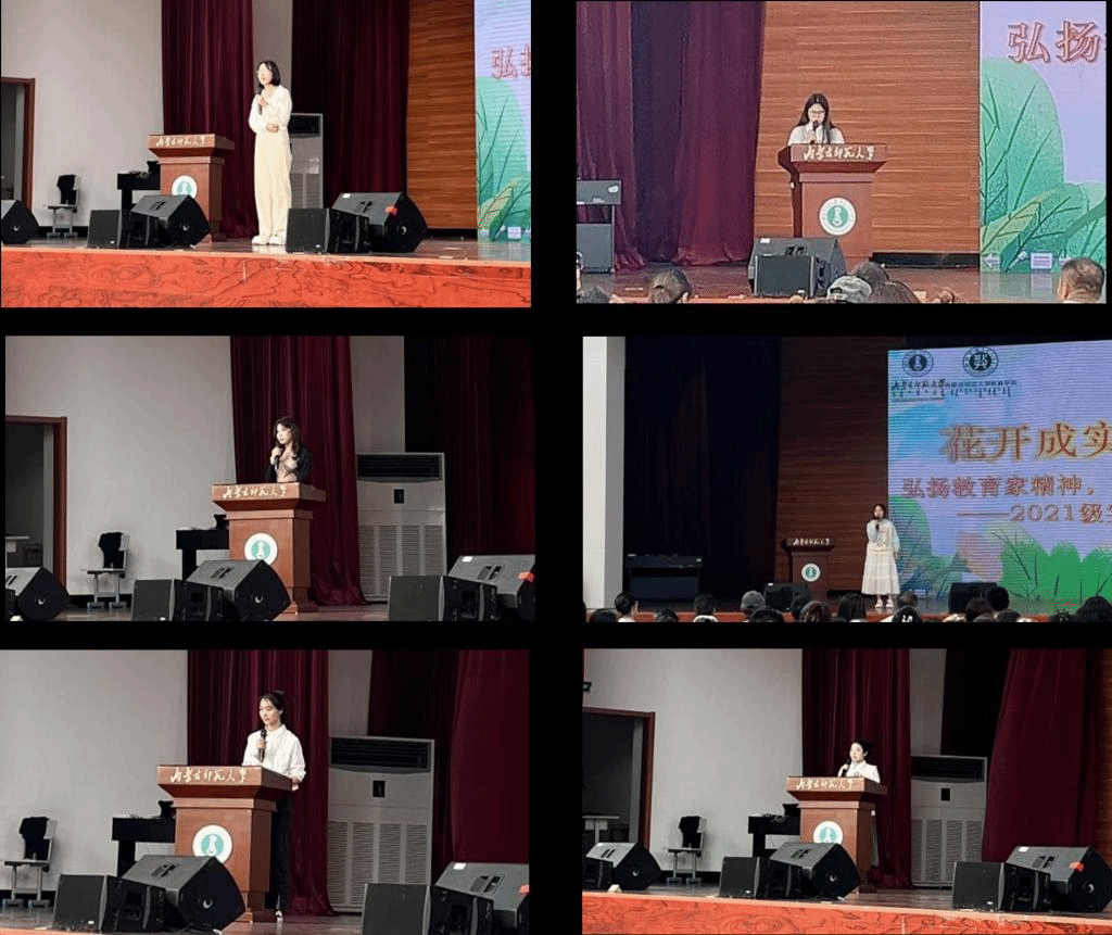 秦佳硕、张燕、李想、董舒婷、赵晨洋及谭雪等2021级不同专业的同学分别从实习收获、教育热爱与追求、教师道德与学生发展、实习心路历程及教师责任与爱心等角度分享自己的实习心得。同学们还表演了《童年的歌》《蒙古舞》,《青玉案》《吉祥三宝》《闪耀吧!青春的火光》《森林狂想曲》《送你一朵小红花》等文艺节目。活动展现出大学生积极向上、阳光自信的精神风貌和扎实过硬的专业技能。