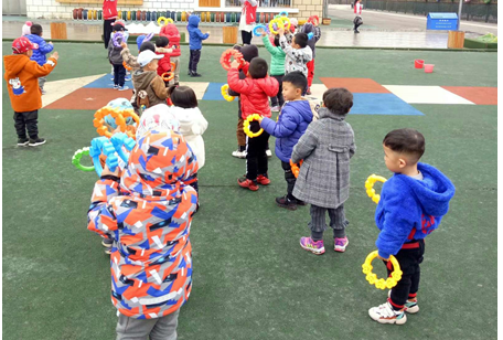每天的课间操——小班的孩子肢体动作还不是很协调,动作也记不住多少,只能跟着旋律和老师的示范跟着扭动下小身体。每天跳三套操,最后一套会用到手摇铃。这是孩子们最喜欢的,因为可以挑自己喜欢的颜色,只要拿到手摇铃他们就会很开心,好像得到了珍宝😁等课间操结束,小朋友会很自觉的把手摇铃送回到我旁边的箱子里(我负责手摇铃的运送),而且会很小心,不会啪一下扔进去。