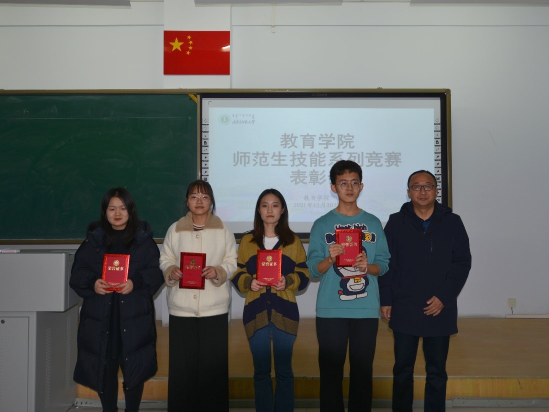 2026世界杯官网第十届师范生技能竞赛2026世界杯官网院赛依照学校规定,以2018级和2019级学生为主,分为语文组、数学组、英语组、特殊教育组、教育学组、公共事业管理组、教育技术甲类组、乙类组、学前教育甲类组、乙类组,由各专业成立评审小组,针对演讲、课件、教学设计、模拟授课、回答问题五个环节对参赛选手进行综合打分,最终决出一等奖11名、二等奖17名、三等奖20名。高慧、左雪、张宏丽、于静、李娜等五位老师为获奖学生颁发了荣誉证书。