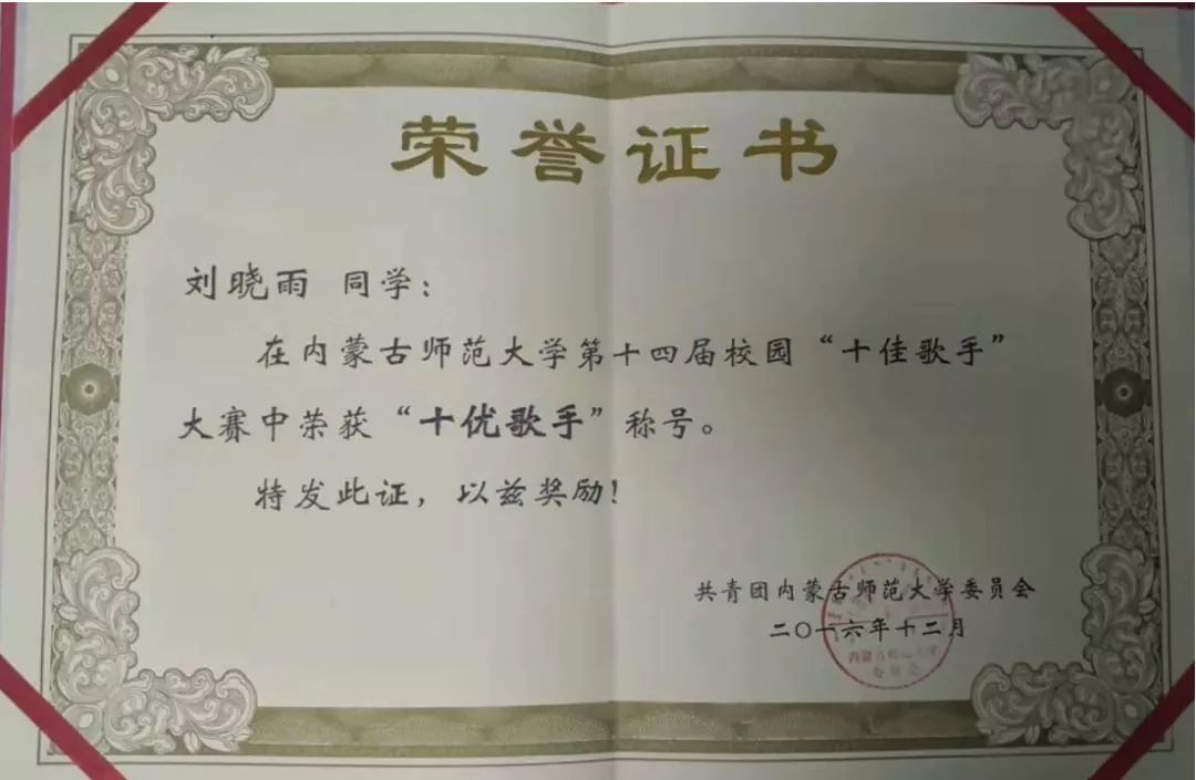 在坚持军营梦想的同时,我也坚持着自己的爱好,在这条道路上,我收获了很多,也成长了很多,最幸运和让我记忆最深刻的就是获得我校第十四届十优歌手称号的那个场景。