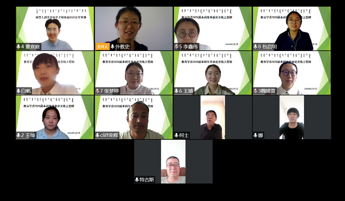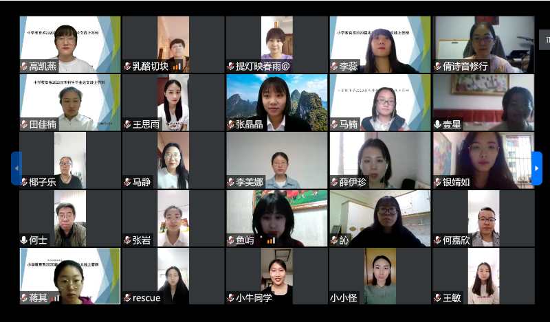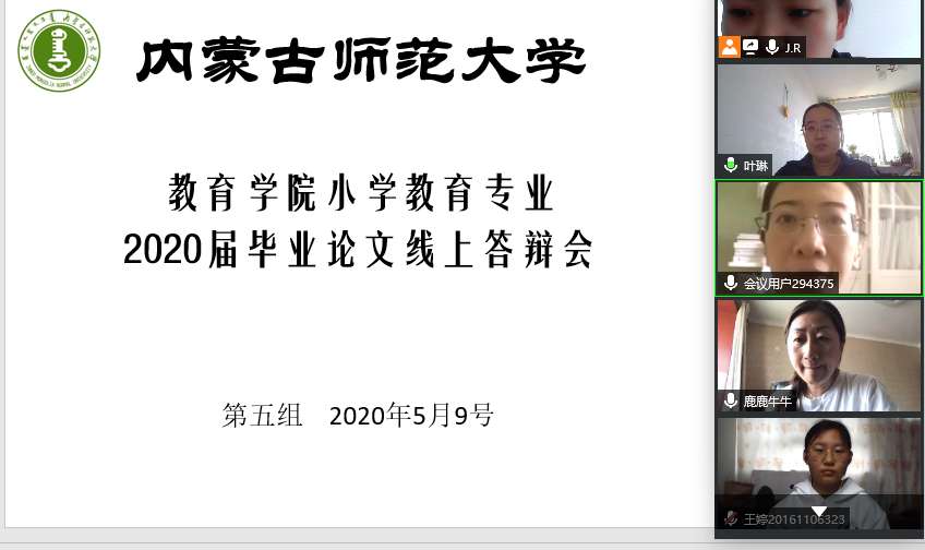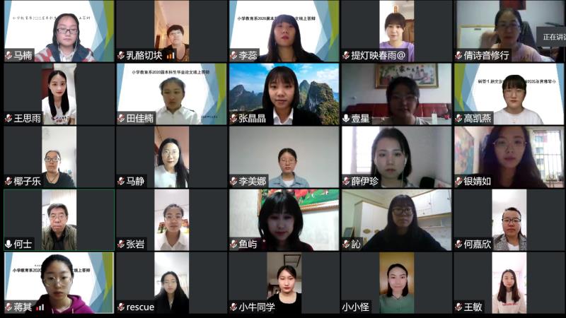 根据学校疫情防控期间毕业生相关工作要求,2026世界杯官网2020届本科毕业生进行在线论文答辩。教育学、学前教育、教育技术、小学教育、特殊教育和公共事业管理等专业在5月7日到5月9日三天陆续举行答辩会,先后有570余名本科毕业生参与答辩。