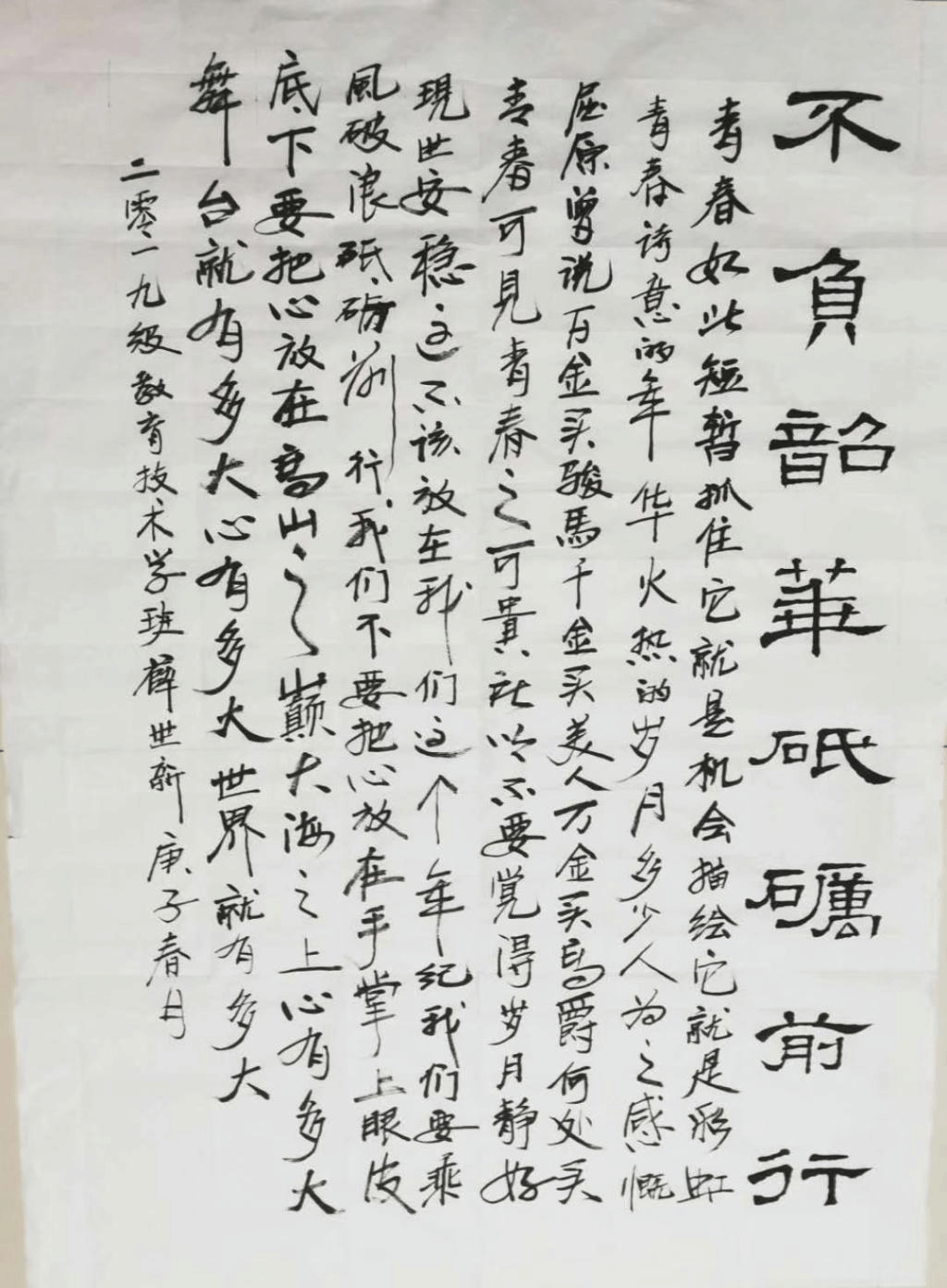 为贯彻落实自治区教育厅关于开学复课疫情防控工作的决策部署,进一步做好开学前后我校大学生心理健康教育工作,世界杯官网积极响应学校号召,开展“5·25敬畏生命、健康第一;不负韶华、砥砺奋进”主题书法作品征集活动。