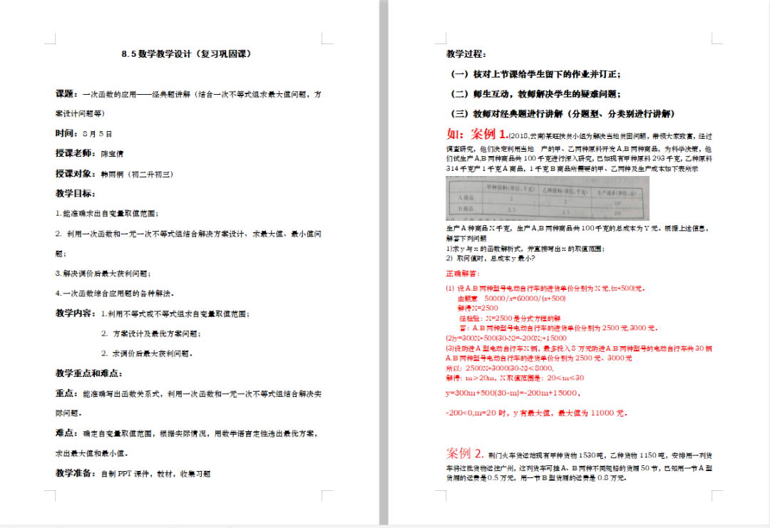 5.学生配合度高,上课积极,以后的授课中,将会逐渐让学生尝试讲题,帮助其理清具体做题思路。