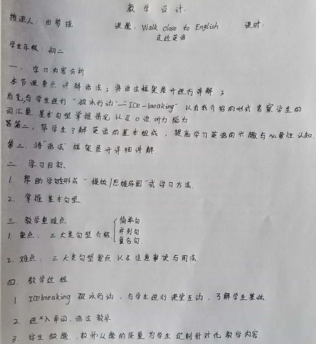 另一方面,在本次的支教活动中,我也进一步累积了自己的教学经验。在具体的教学过程中,也不断的反思自己,更加知道了自己教学的不同方面的缺点和优点。比如说,有些时候当学生的反馈不积极时,也许是因为讲的内容他没有完全理解,也可能是因为这部分内容,他早已经掌握,并且觉得有点无聊,开始走神了。当然,我也有一些优点,在讲语法的时候,会将抽象的语法规则用比喻的手法来讲,让学生们明白,并且通过情景去记忆句式,化繁为简。最后,我相信在今后的教学生涯中,有了这次宝贵的经验,我一定能取长补短,争取成为一名学生喜爱,社会认可的合格的人民教师。