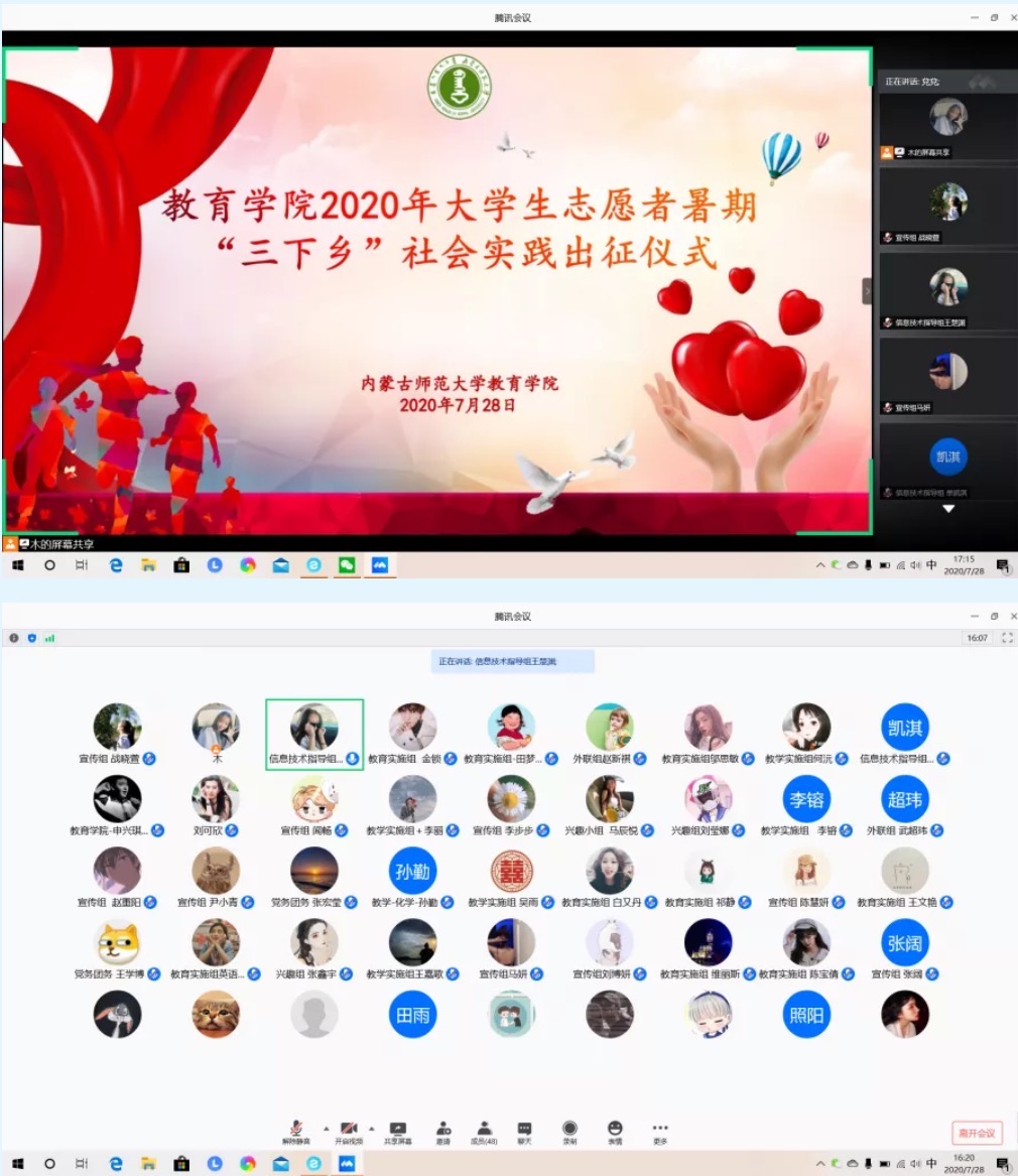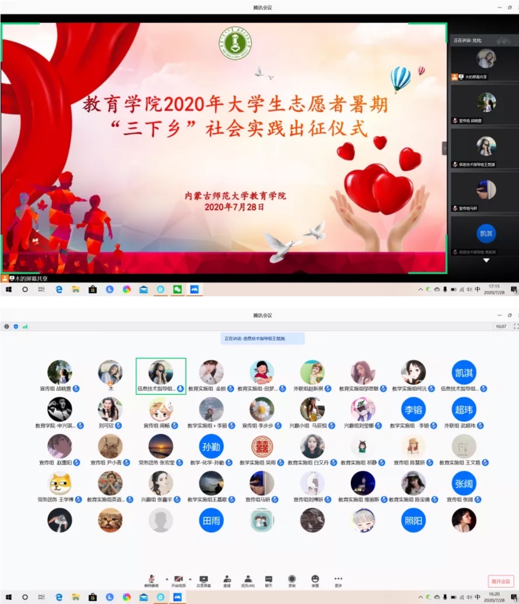 在2020年暑期云端三下乡为期十五天的社会实践活动中,我们信息技术指导小组成员的主要工作是整合志愿者信息、维护网络,为整个线上课程的流畅保驾护航,保证各学科志愿者的线上辅导任务顺利完成。