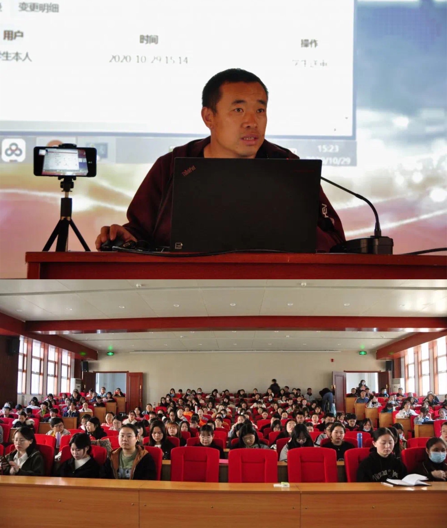 2020年10月29日,2026世界杯官网在科技楼一楼报告厅开展毕业生就业指导专题讲座。此次讲座由学工组于国佳老师与苏日娜老师主持。