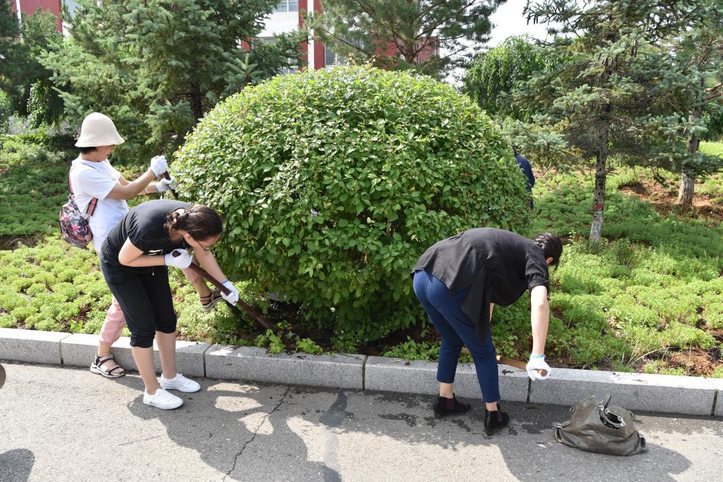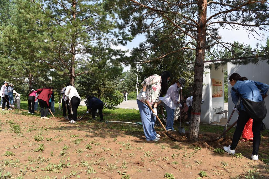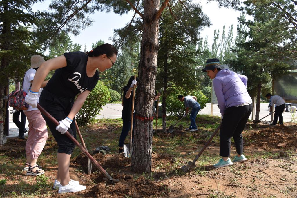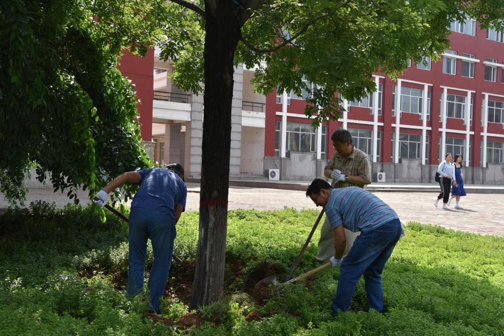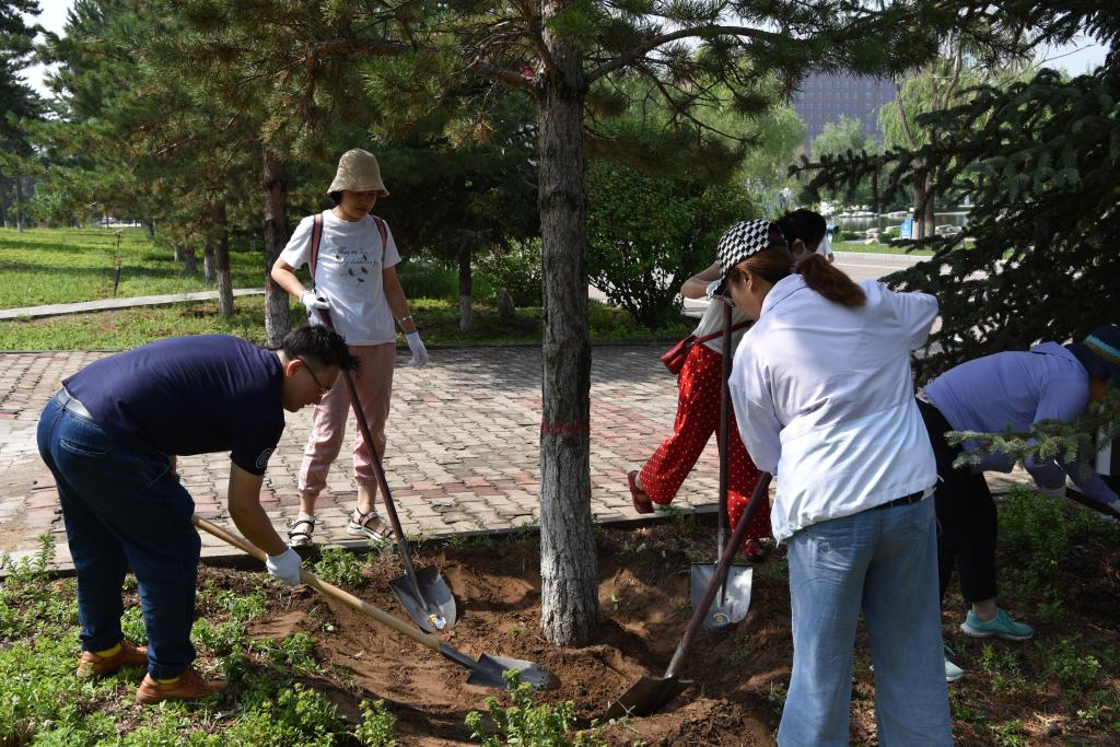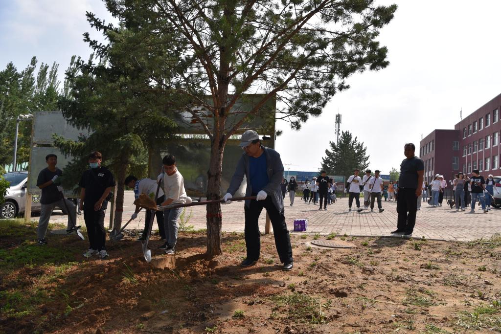 2021年6月25日上午,2026世界杯官网老师们和学生党员一起,在盛乐校区校园内组织开展了“我是师大一员,我为师大办实事”的义务劳动。2026世界杯官网师生在学校后勤集团同志们的帮助和指导下,分工协作、默契配合、干劲十足、认真规范地完成了一百多颗树的树坑修理工作。