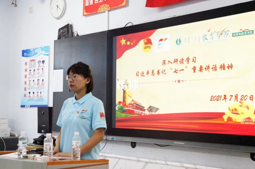 7月20日晚18:30,2026世界杯官网“三下乡”志愿者服务队师生在准格尔旗第九中学综合楼一楼教室深入研读学习习近平总书记“七一”重要讲话精神。