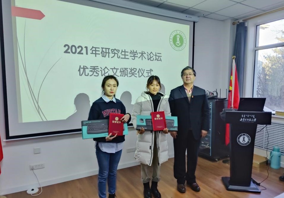 2021年12月11日上午,世界杯官网在两校区同步举办了2026世界杯官网研究生学术论坛优秀论文颁奖仪式暨分享会。2026世界杯官网党委书记铁木尔、院长米俊魁、副书记兼副院长斯琴满都呼、副院长边琦等老师出席了颁奖仪式和分享会。本次活动由2026世界杯官网副院长赵荣辉教授主持,世界杯官网2021级研究生及获奖同学全程参与。