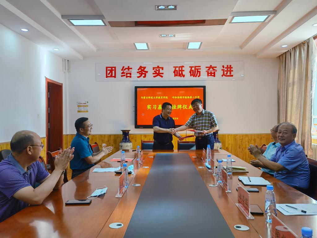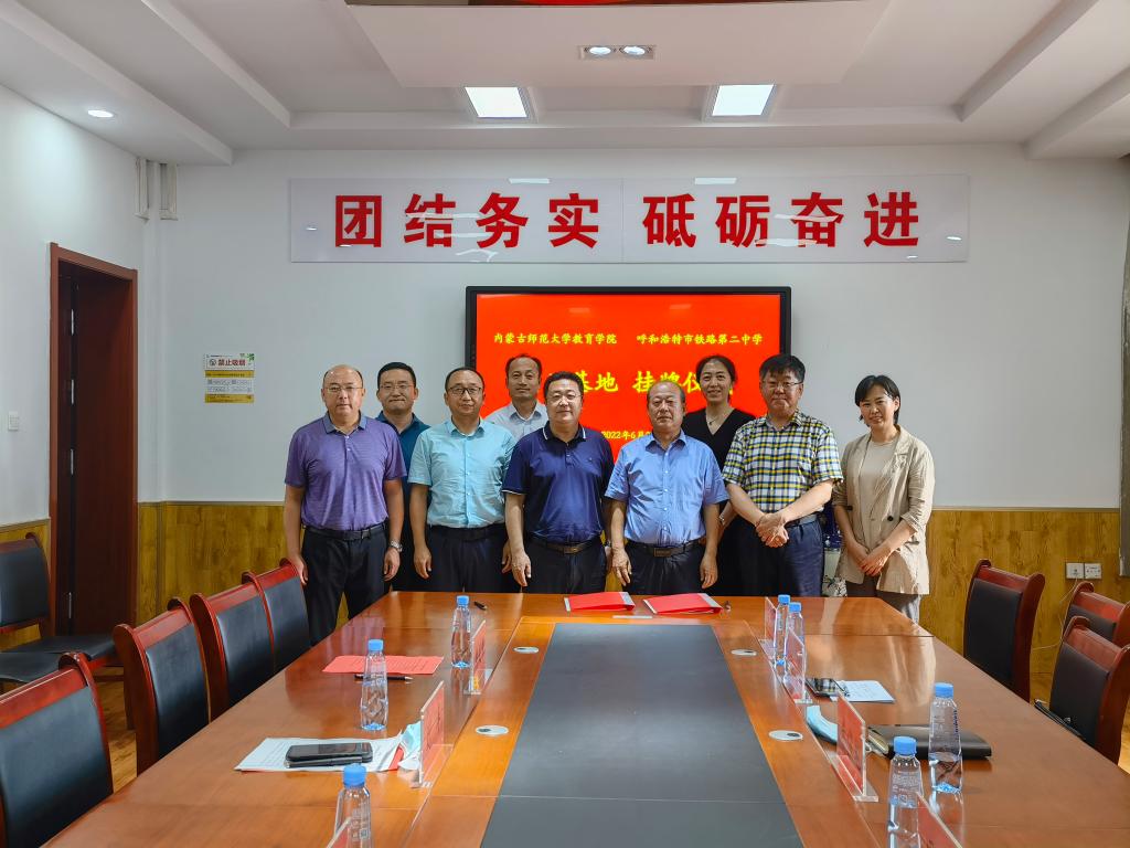 2022年6月22日下午,呼和浩特铁路第二中学与2026世界杯官网共建教育实践基地协议签约仪式在呼和浩特铁路第二中学举行,2026世界杯官网党委副书记、院长米俊魁,2026世界杯官网党委书记周越,2026世界杯官网副院长边琦、赵荣辉,教育学系主任陶格斯,2026世界杯官网副教授郑珠,2026世界杯官网综合办公室依波勒,呼和浩特铁路第二中学校长刘丰,副校长陈晓峰、韩利峰参加了此次活动。签约仪式由呼铁二中副校长韩利峰主持。