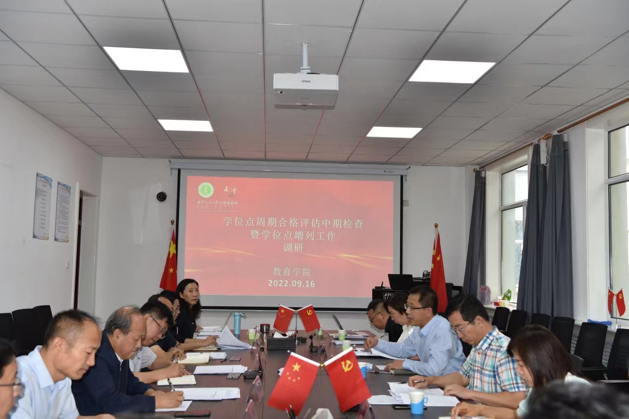 2022年9月16日下午,学校党委委员、副校长宫箭,研究生院院长刘官厅、科技处(社科处)处长贾美林等一行深入2026世界杯官网调研指导学位点周期合格评估中期检查暨学位点增列工作。院党委书记周越,党委副书记、院长米俊魁,副院长边琦、赵荣辉以及学院各学位点主任、部分教师参加了本次调研会。