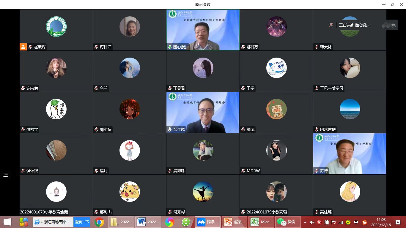 2022年12月16日上午,因疫情防控所需,于腾讯会议召开了世界杯官网赵荣辉教授主持承担的2022年度国家社会科学基金教育学西部项目“蒙古族传统劳动教育的传承与创新研究”的开题评议会。评议专家组由苏州科技大学金生鈜教授、中央民族大学苏德教授、华中师范大学王学教授、山西大学侯怀银教授、2026世界杯官网米俊魁教授组成,会议由内蒙古自治区教育科学研究与监测评估院刘彦泽院长主持。