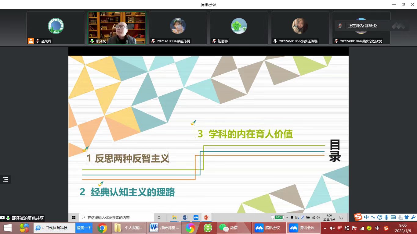 2023年1月6日上午,世界杯官网邀请南京师范大学学报编辑部主任,《南京师大学报》(社会科学版)执行主编,教育科学学院教授、博士生导师邵泽斌通过腾讯会议线上为世界杯官网师生做学术报告,报告会由副院长赵荣辉教授主持,全院师生150余人参加了本次学术活动。