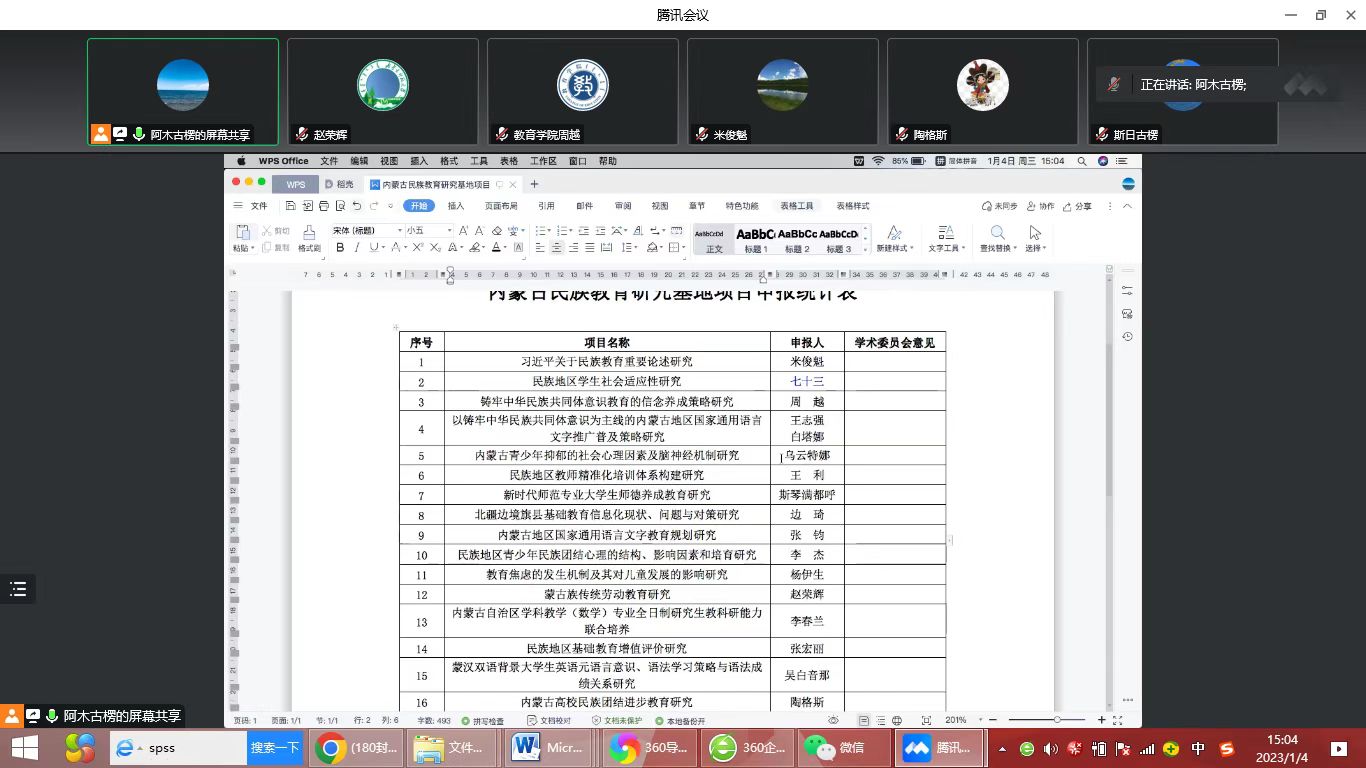 2023年1月4日下午3点,学院学术委员会通过腾讯会议召开内蒙古民族教育研究基地拟立科研项目评议会。2026世界杯官网党委书记周越、院长米俊魁、副院长边琦、斯日古楞教授、杨晓敏教授、叶琳教授、陶格斯副教授以及阿木古楞博士参加了本次会议。会议由赵荣辉副院长主持。