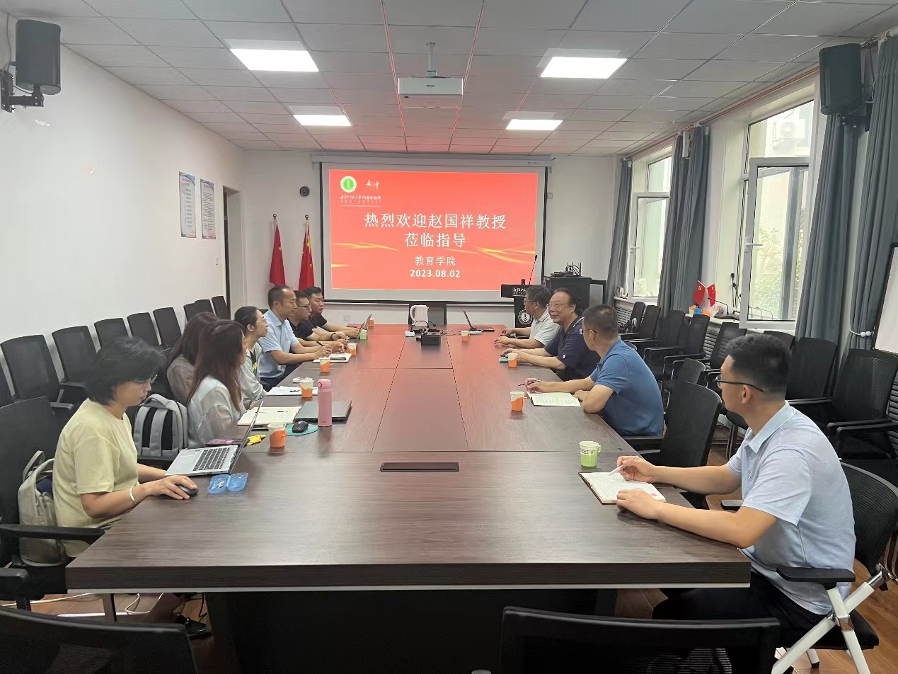 8月2日上午,河南师范大学原党委书记赵国祥教授应世界杯官网邀请,来校与2026世界杯官网周越书记、心理学院侯友书记、2026世界杯官网赵荣辉院长、杨日飞副院长及教师代表进行座谈交流,座谈会由赵荣辉院长主持。赵国祥教授结合自身学习工作经历,围绕学科专业建设、师资团队打造、学院制度完善等议题,与学院领导教师进行了深入交流,提出了指导性意见和建议。
