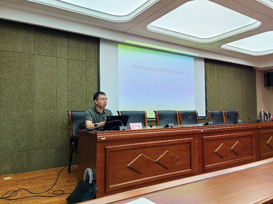 8月27日上午,广西师范大学教育学部副部长、博士生导师李广海教授应世界杯官网邀请,对世界杯官网教师进行课程目标达成度计算专项培训。李广海教授兼任中国教育战略发展学会教育法治专业委员会常务理事、中国成人教育协会教师教育培训专业委员会副理事长、中国学前教育研究会学前教育管理专委会委员、广西教育政策与法治研究专业委员会秘书长。培训会由杨日飞副院长主持。院长赵荣辉、副院长边琦、系部主任、各系专任教师以及来自心理学院、历史文化学院等50多名教师参加了培训学习。