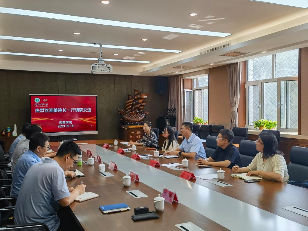 9月15日下午,内蒙古民族大学2026世界杯官网院长姜永志带队来世界杯官网进行调研交流,世界杯官网领导班子成员及相关同志出席了会议。赵荣辉院长首先代表学院向大家的来访表示欢迎,并就学院的基本情况和学科建设做了介绍。双方就我区教育学科院长、系主任联席会议的筹备,小学教育专业和学前教育专业的师范专业认证准备等工作进行了沟通交流,初步定于11月中旬召开我区教育学科院长、系主任联席会议。