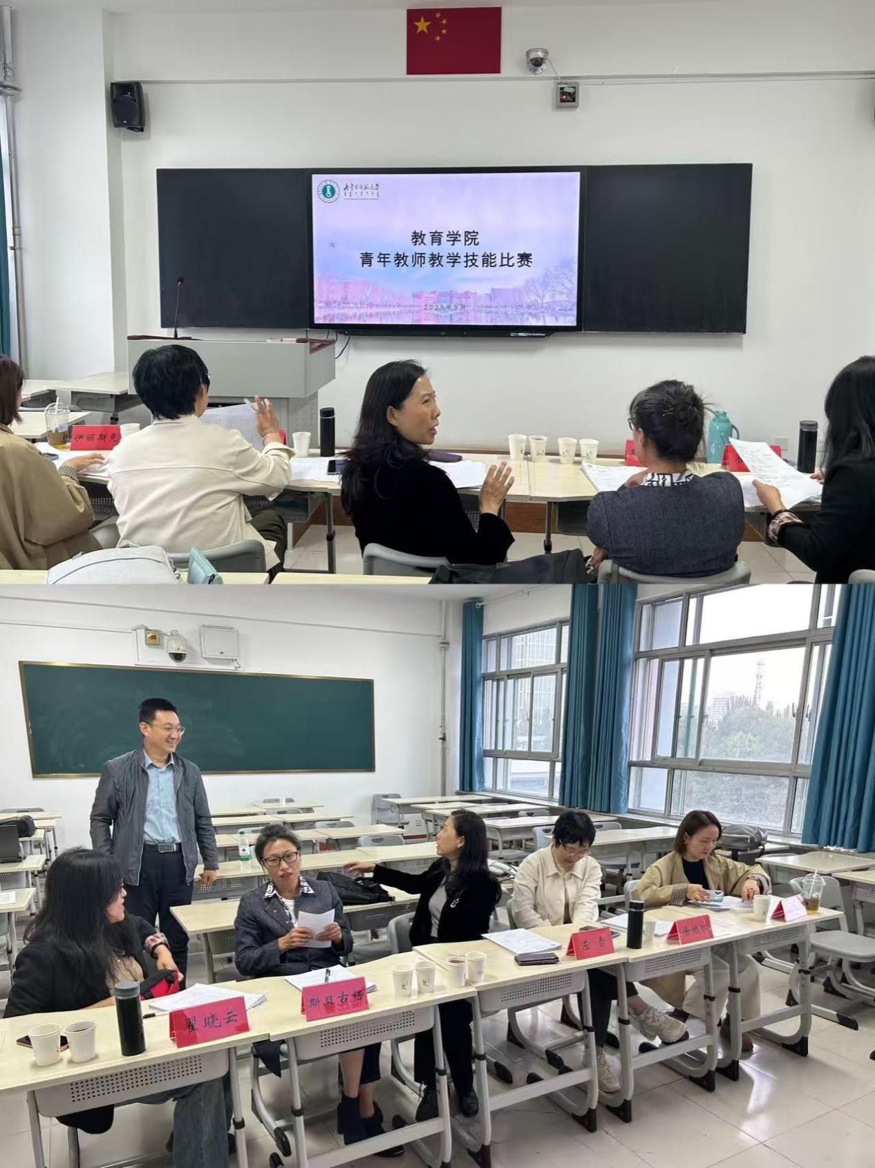 9月26日下午,世界杯官网在田楼401教室举办2025年青年教师教学技能大赛。大赛由左雪(组长)、斯日古楞、徐继红、翟晓云和伊丽斯克5位老师担任评委。王春华、党晶、任雪峰、陈璐瑶、王昕、苏妍、仲丹丹等7位老师参加了比赛。经过评委公平公正公开评议,学院推荐王昕、陈璐瑶、仲丹丹三位老师参加校级比赛。