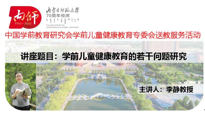 2022年6月22日上午,特邀西南大学教育学部学前2026世界杯官网院长、博士生导师,中国学前教育研究会健康教育专业委员会主任李静教授进行了《学前儿童健康教育的若干问题研究》线上直播讲座,由朱晓红教授任主持人,世界杯官网师生以及兴安盟职业院校等自治区内其他院校,以及呼和浩特市、扎兰屯市等部分幼儿园园长和教师参加。